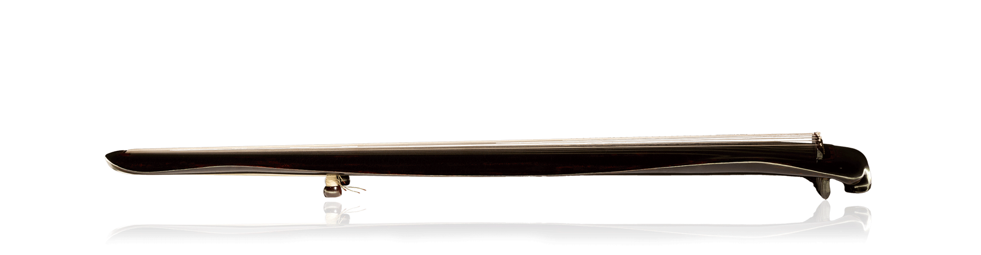 青云,创意蕉叶式,为王鹏新创古琴样式,较之传统蕉叶琴式更为写意。青云将叶边波纹化繁为简,项腰如微风轻拂,两翼如流觞曲水,时而微卷,间或轻垂,摇曳灵动。其飘逸之姿,可见斐翁诗中画意:“闲时照水闲舒卷,山处来犹山处还”。此式重要特点在于琴尾处理,以往琴弦绕尾而下,而此琴则从冠角处掘凿回纳,匿于无迹,更显雅致。“青云”之名,意在表征直上九霄、积极升腾的入世情志,与无论世事变迁,始终遗世独立的出世精神。