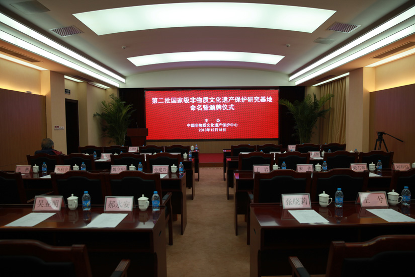 2013年12月18日, “第二批国家级非物质文化遗产保护研究基地命名暨颁牌仪式”在中国非物质文化遗产保护中心(中国艺术研究院)举行。中国非物质文化遗产保护中心常务副主任罗微主持会议,文化部非物质文化遗产司司长马文辉、副司长马胜德、王福州,中国艺术研究院党委书记、副院长高显莉,中国艺术研究院副院长牛根富,中国非物质文化遗产保护中心专家委员会副主任刘魁立等专家和领导出席了会议。文化部非物质文化遗产司司长马文辉, 钧天坊非遗传承人王鹏,专家代表刘锡诚等做了主题讲话。