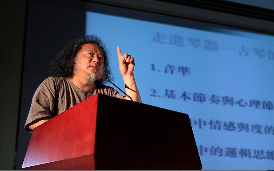 讲座以“重识琴道”、“走进琴器”、“古琴文化的传承”三部分展开,亦讲亦演,分享王鹏先生多年来于古琴文化传承的心得——通过习琴,实践生活美学精神,结合中华经典传统文化,向全社会推广,以返其天真、涵养人性、净化人心。