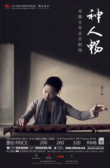 甲午仲秋(2014年9月8日),国家大剧院小剧场将迎来一场别开生面的古琴音乐会——神人畅--“钧天云和”巫娜古琴音乐剧场。演出艺术家巫娜作为中央音乐学院古琴演奏专业的首位硕士,虽脱胎于学院传统却从不拘泥,多年来活跃于当代先锋音乐与艺术领域,成为优秀的跨界演奏者,以貌似“叛逆”行径实践纯粹的灵魂追寻,在青年艺术家之中堪称典范。这位不同寻常的青年古琴艺术家拥有与各种音乐艺术领域的艺术家合作的丰富经验,不断开拓着古典与当代的跨度,并探索其灵魂融通的秘径。