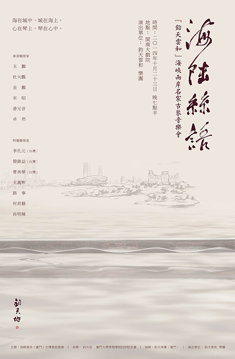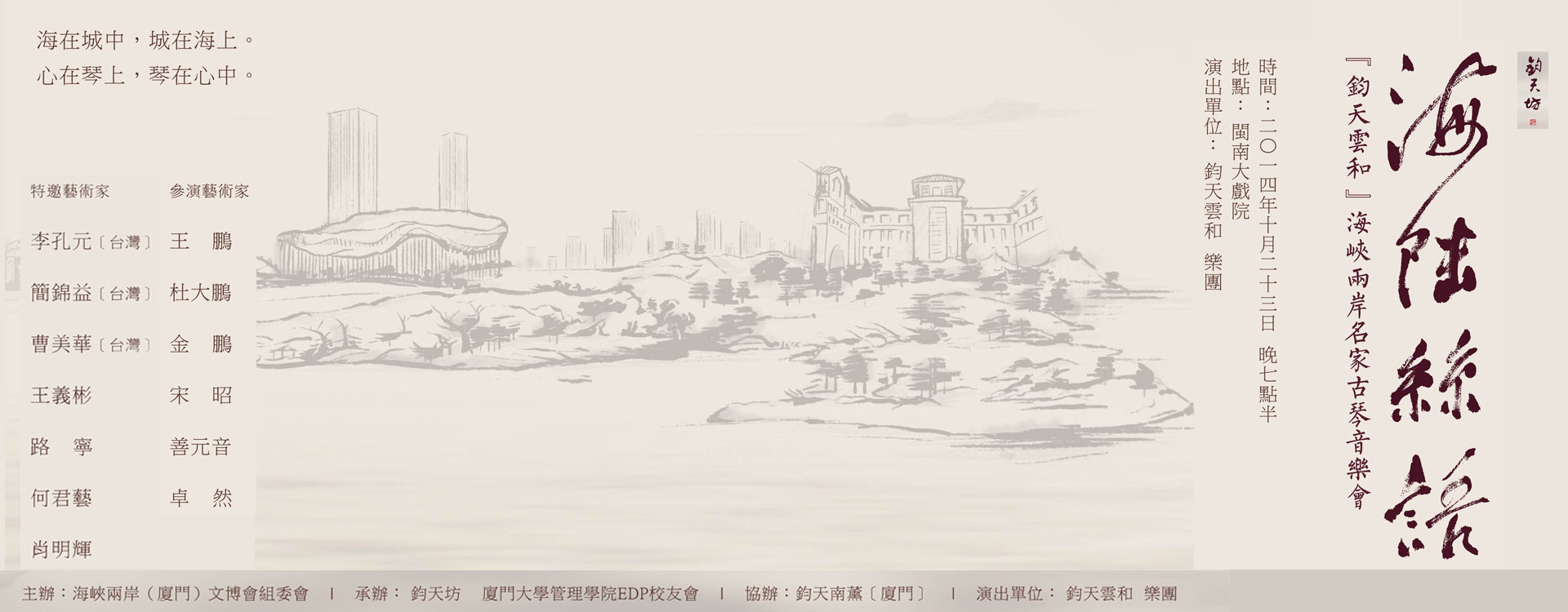 本次演出由海峡两岸文博会组委会主办、钧天坊和厦门大学管理学院EDP校友会共同承办、钧天坊合作伙伴——厦门钧天南薰协办。音乐会以钧天云和乐团艺术家为主要阵容,特邀台湾著名琴人李孔元、资深茶人曹美华、国学学者及书画家简锦益等艺术家、学者,用琴、歌、箫、茶、书法、大提琴、吉他等古今东西艺术形式,传递当代文人生活美学。